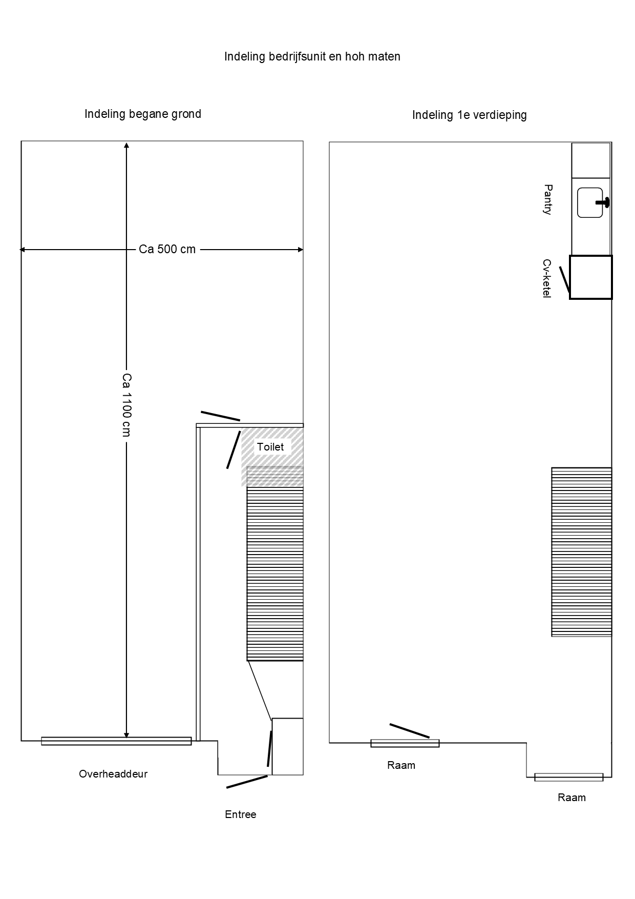 Deze unit heeft een overheaddeur en een loopdeur op de begane grond. Achter de overheaddeur is momenteel een kozijn met loopdeur en glas geplaatst waardoor de begane grond ook te gebruiken is als winkel, kantoor of werkplaats.